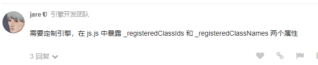 需要定制引擎,在 js.js 中暴露 _registeredClassIds 和 _registeredClassNames 两个属性