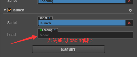 6 在属性面板中,也无法将脚本2拖入到loading属性中