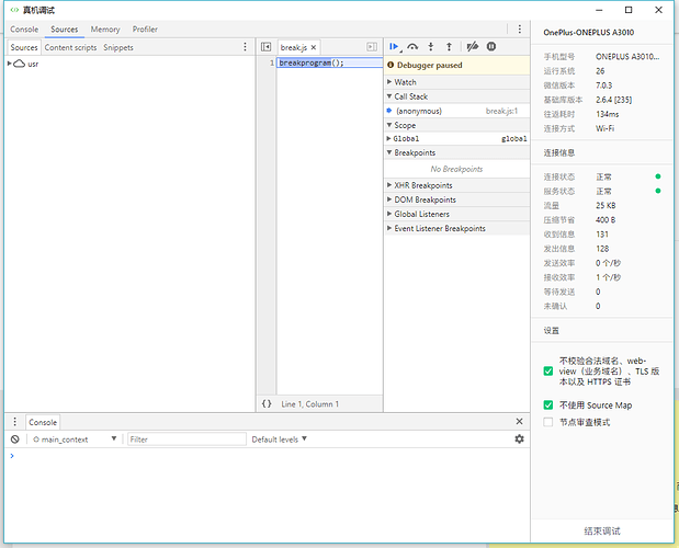 真机调试微信工具默认是有一个断点在启动的时候,直接跳过就好,不是啥问题。真机调试器就是这样的机制。