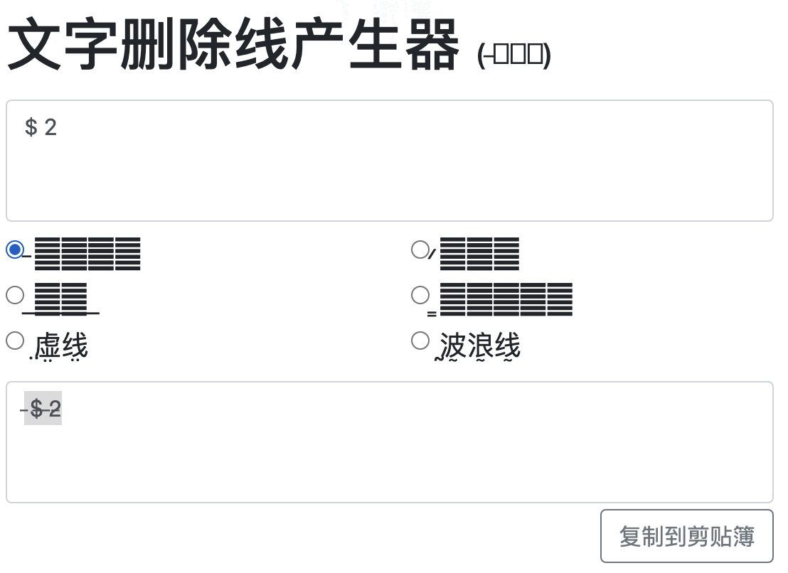 其实用文字删除线生成器就好了,复制粘贴就完事https://cn.piliapp.com/cool-text/strikethrough-text/