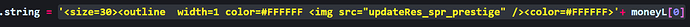 ‘<size=30><outline width=1 color=#FFFFFF <color=#FFFFFF>’+ moneyL[0]