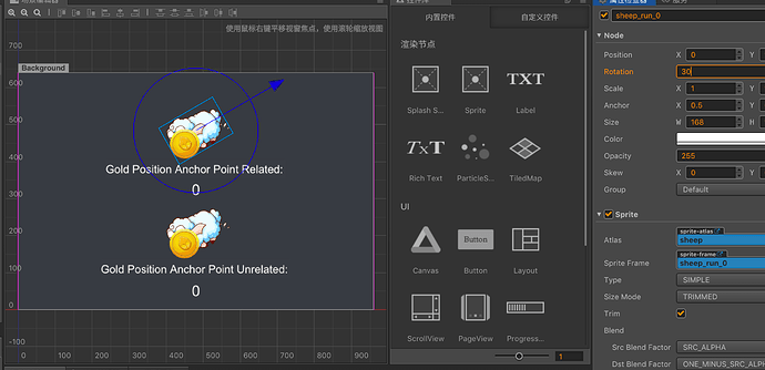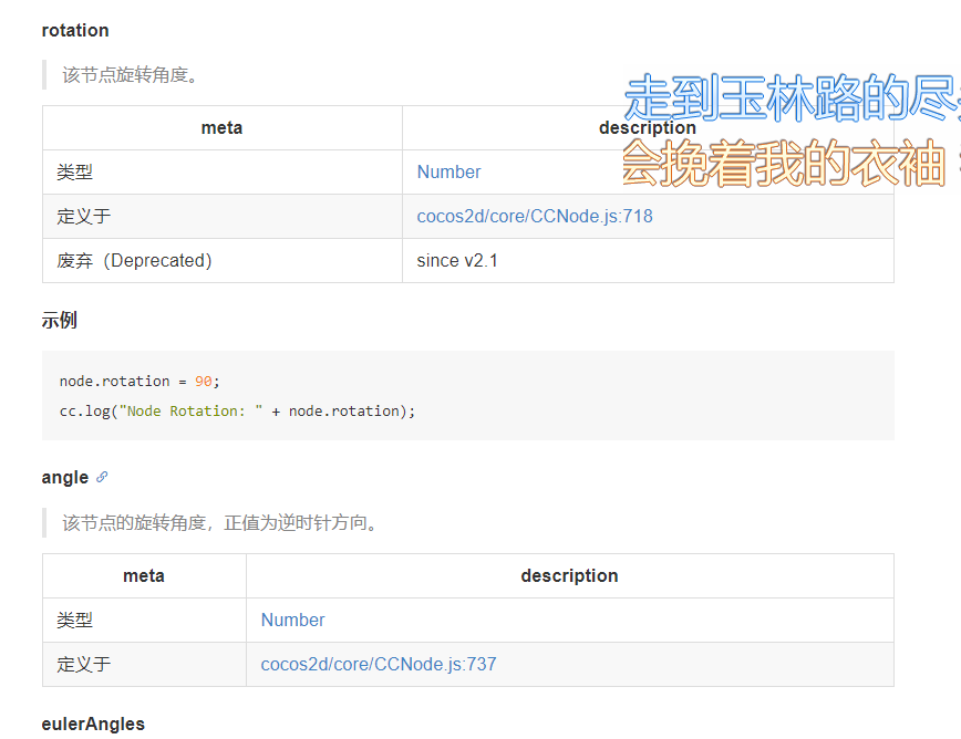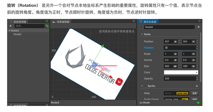 文档上说rotation角度值为正时,节点顺时针旋转,角度值为负时,节点逆时针旋转。