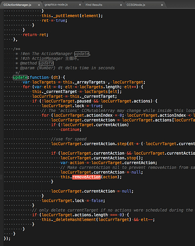 目前這個函數位於CCActionManager.js::update,並在update內當完成時候調用removeAction