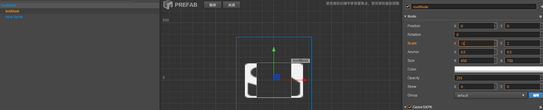 问题描述: 根节点和一个子节点上都有mask 根节点scaleX = 1时 一切正常 在根节点scaleX = -1时,子节点的mask会把其他同级子节点遮住,导致显示不正确 图1: 根节点scaleX = 1