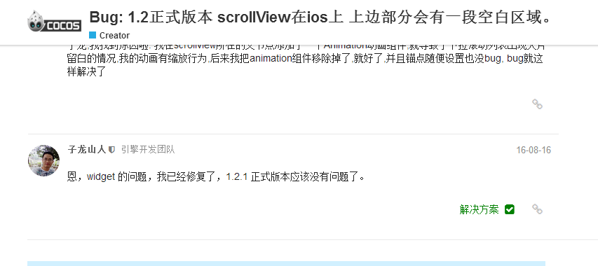 当前版本 1.6.1,scrollview用scaleTo动作会出现content位置上拉或者下滑位置不对。去年的帖子说已经修复,但是使用缩放还是不对