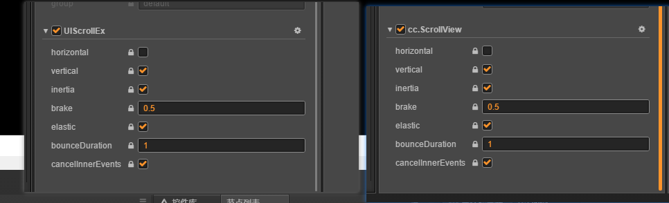 如题,经过反复测似之后,发现如果scrollview扩展出一个组件,例如scrollviewEx(继承之scrollview),那么这个扩展的srollviewEx在实际的使用中,当我滚动content的时候,没有惯性滚动的效果,参数设置了也没有用,下面是运行时的截图,