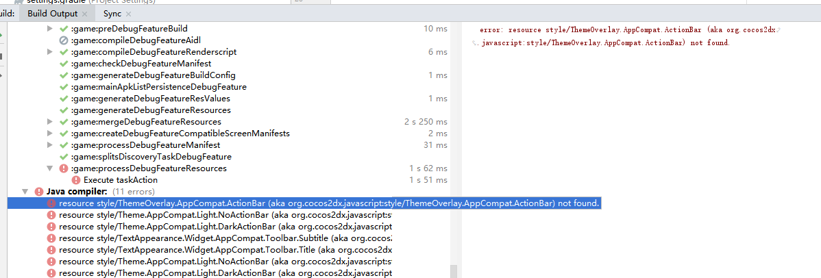 对接一个平台的sdk,工程编译时,总说aka org.cocos2dx.javascript:style/ThemeOverlay.AppCompat.ActionBar not found,这个是怎么调?(对android studio不是很熟,网上找的资源都没解决)。