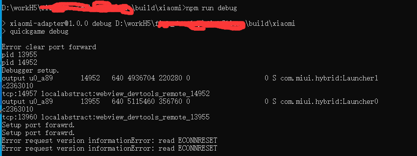 好像不是哦,我这边进程里没有adb.exe也会出现这个问题。第二个error提示应该是项目构建完成后xiaomi那个路径下adb.exe缺失。