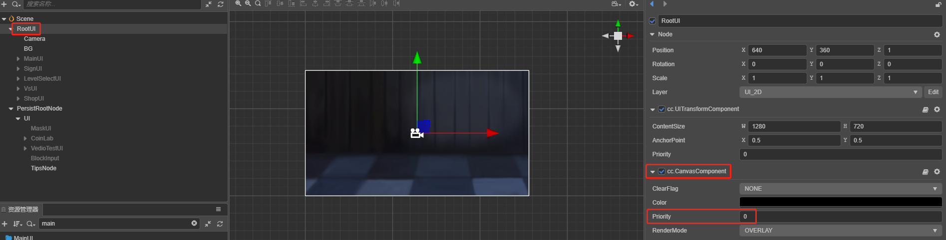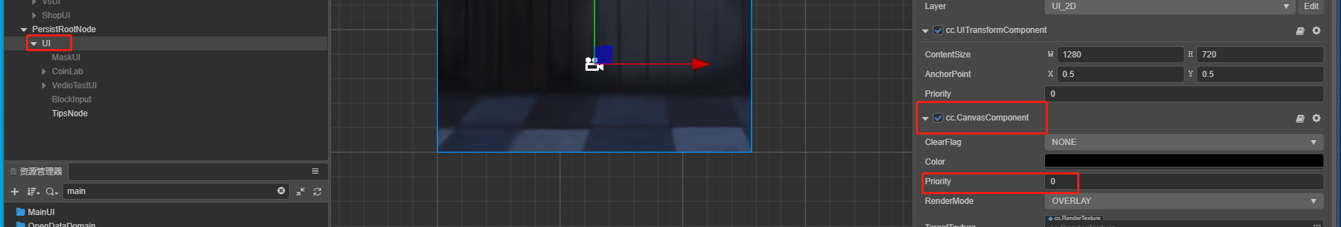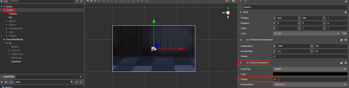 解决问题:查看两个基础UI和公共UI Canvas组件,发现priority渲染优先级都为0,修改公共UI的为1问题解决