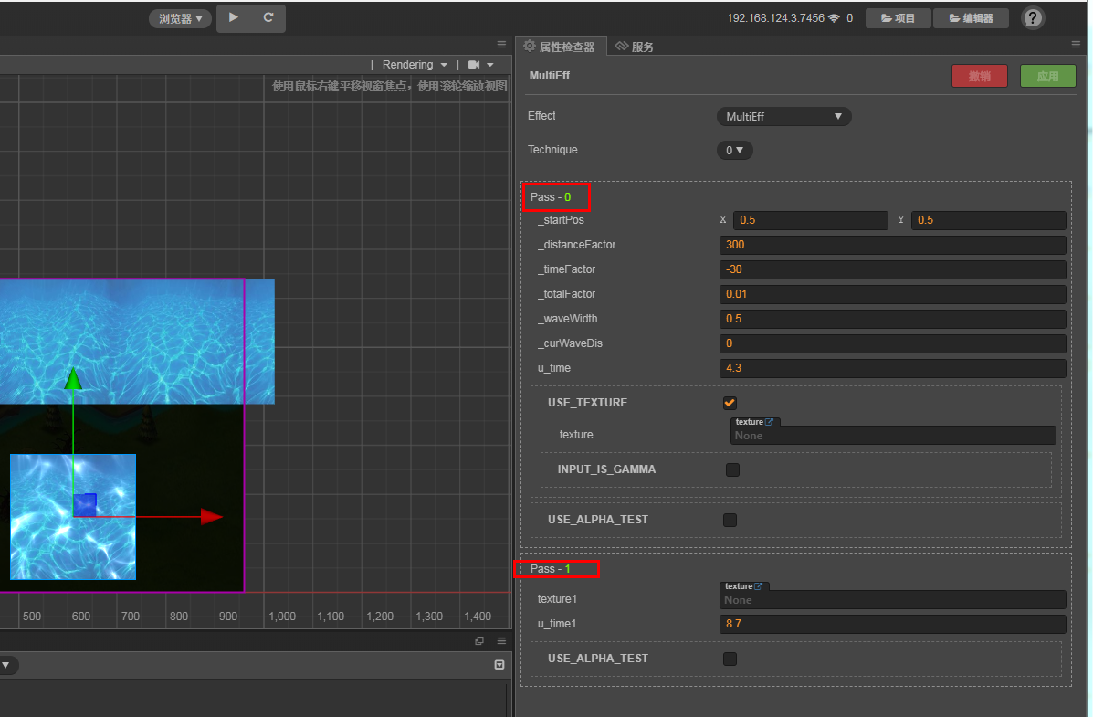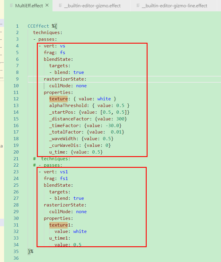 ###想给一个精灵 加上两个Shader 如何实现。一个水波效果,一个光影效果,想要两个效果都叠加,但是发现不太行