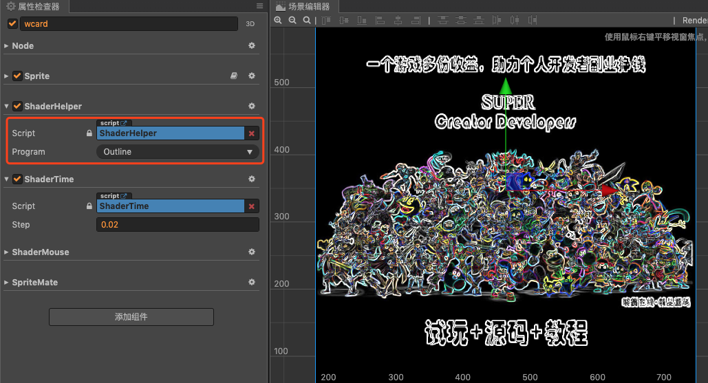以上是 ShaderHelper 组件的主要新功能,切换自己想要的 Program 属性就能看到对应的组件属性变现化。