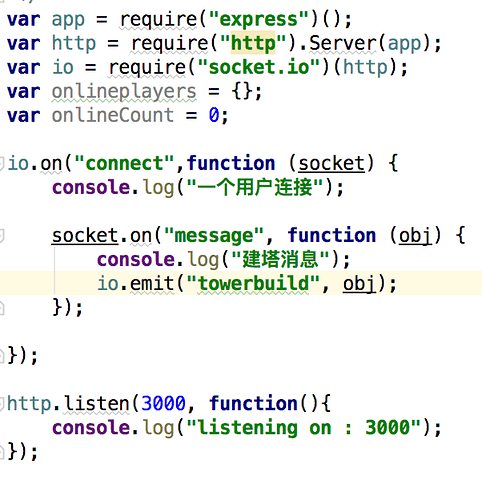 onCreateTower是connect方法之外的一个类,onCreateTower想调用emit。但是this.socketIO.emit(“message”, event);这样写运行不出来