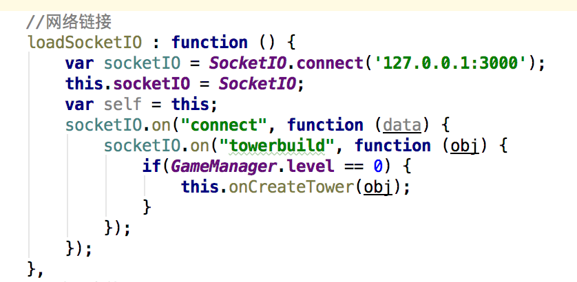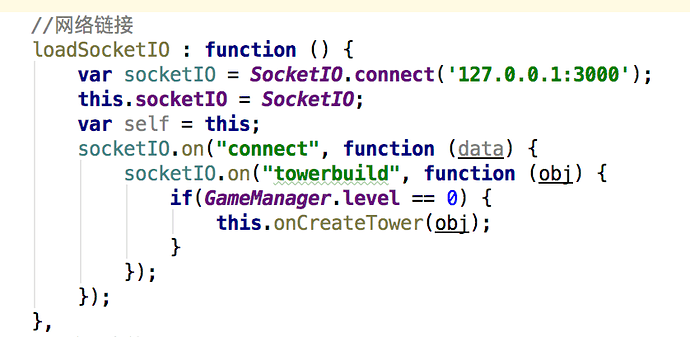 谢谢大大,这句话是写在链接的类里的吗。我的想法是,运行到onCreateTower的时候,如果满足条件就给服务器发emit。不是在链接的时候调用onCreateTower。