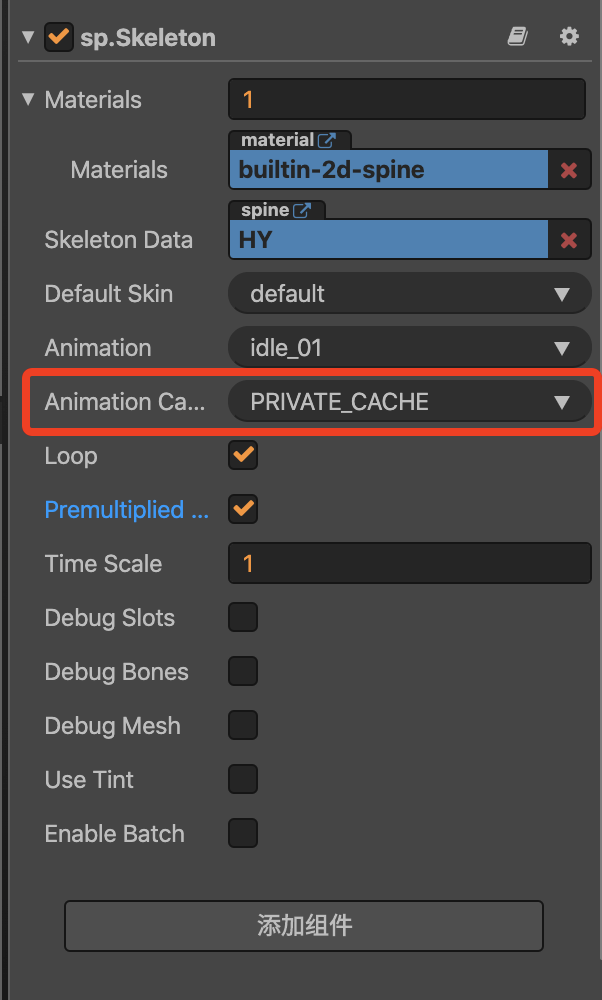 spine骨骼动画使用private_cache模式