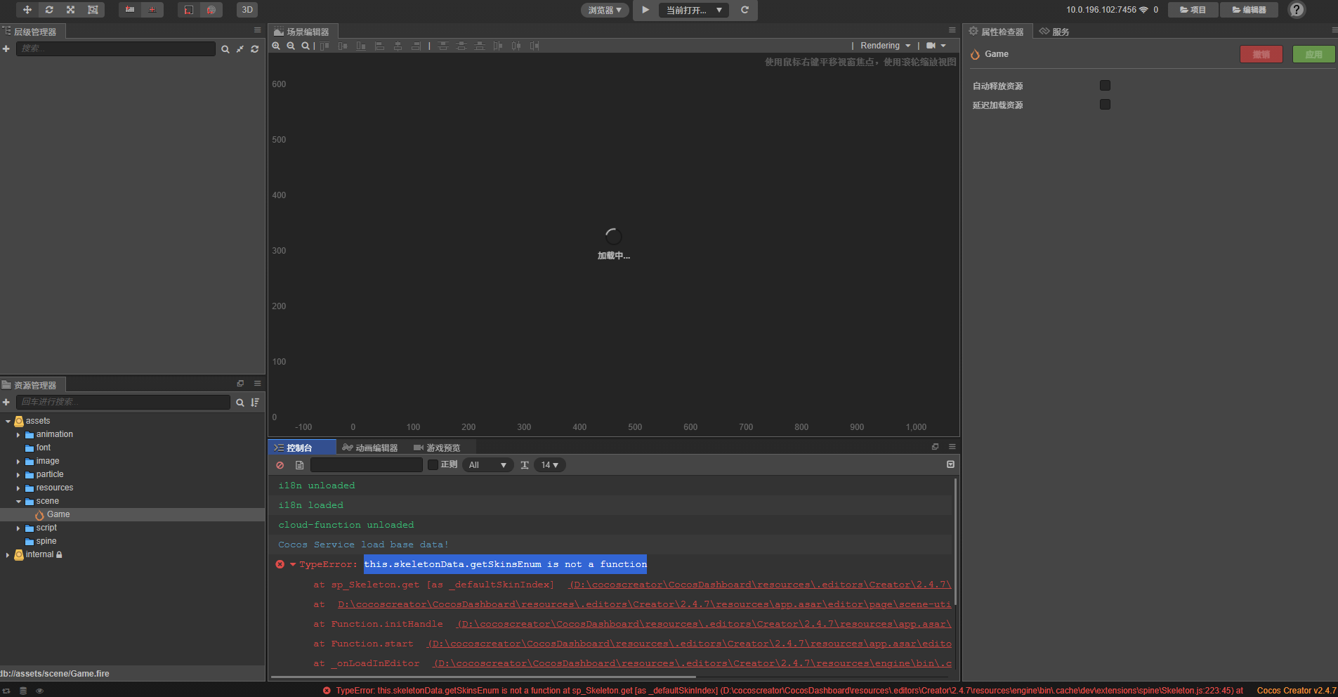 求大佬看看这个问题,2.4.7版本,放入spine文件报错以后场景直接打不开了,现在删除了本地的spine文件,但是无法进入场景操作节点,因为场景打不开