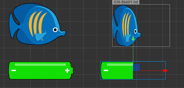 Sprite的Filled为什么有的图是裁剪的,有的图是拉伸的???请问怎么让那只鱼也能想下面一样裁剪的?