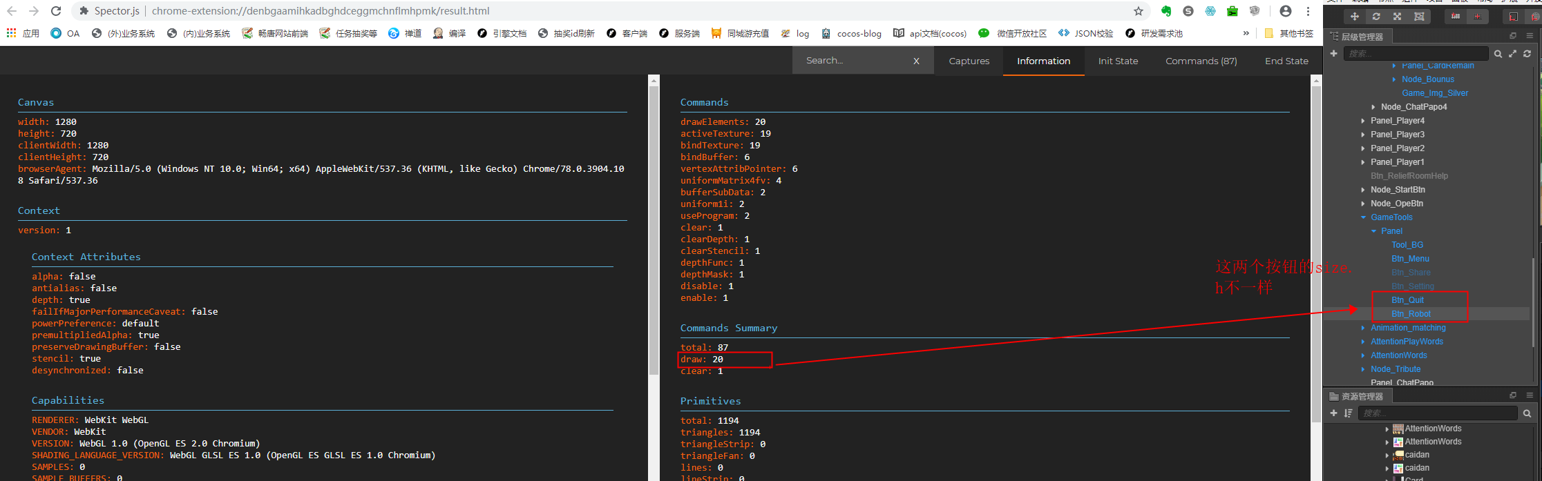 好的,多谢哈. 那spriteframe的size会影响吗? 我这边有三个按钮,其中有一个sprite frame的size和其他两个不一样,但他们用同一个图集(Texture Packer制成的),测试发现drawcall会增加