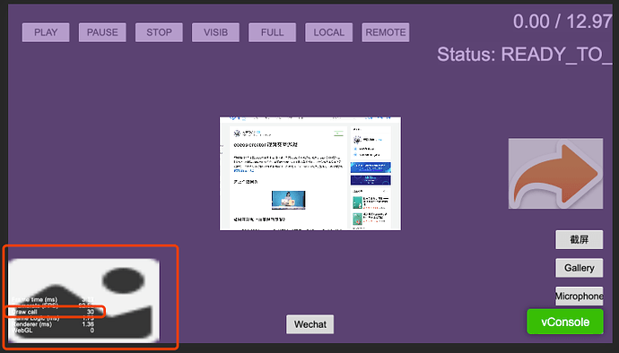 drawcall为30,左下角精灵为打算放屏幕截图缩小版的精灵