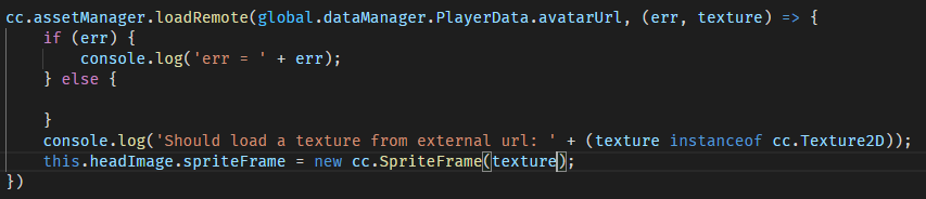 然后this.headImage.spriteFrame成功替换了。这说明我放的URL资源是没问题的。