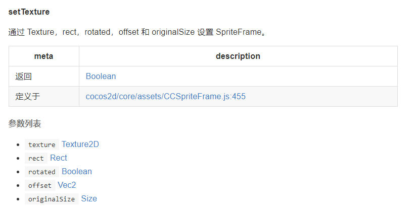 加载一张网上图片,由于这个实例会保存为cc.Texture2D类型,所以我查看了一下文档如何将其放在CC.Sprite的spriteFrame上,然后看到一个setTexture方法: