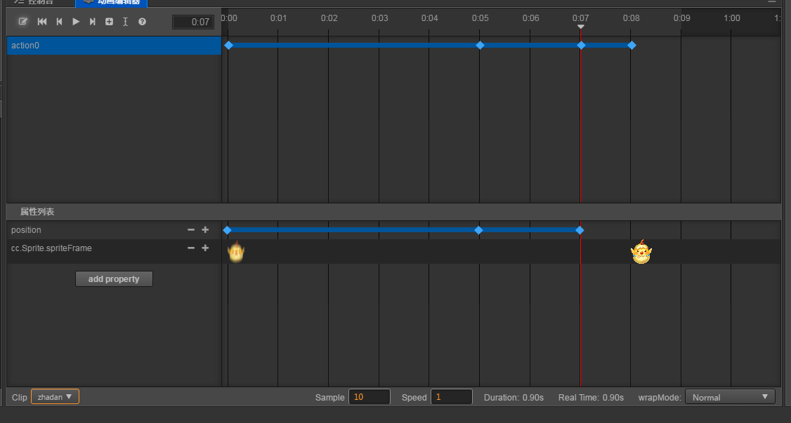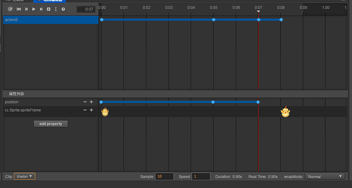 就是一个节点只能放一张的spriteFrame,所以你要放多张的spriteFrame就必须要多加对应多少个包含cc.Sprite的子节点,,比如你需要在一个people节点上面的同一帧下面增加两条腿的spriteFrame你就必须在people节点增加两个leg的cc.Sprite节点