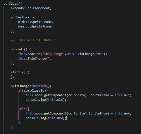 我写了一个脚本,挂在了一个node上,并且有两个属性,可以直接拖入SpriteFrame。