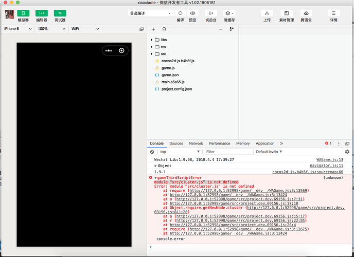 构建发布wechat game后在微信开发者工具编辑的时候报错了 module “src/cluster.js” is not defined 请问下这个怎么解决?