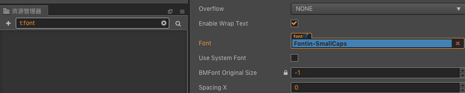 抱歉,看错了,看成是在层级管理器里面了。确实是应该搜索t:font,不过并没有效果。这个问题我们会反馈处理一下