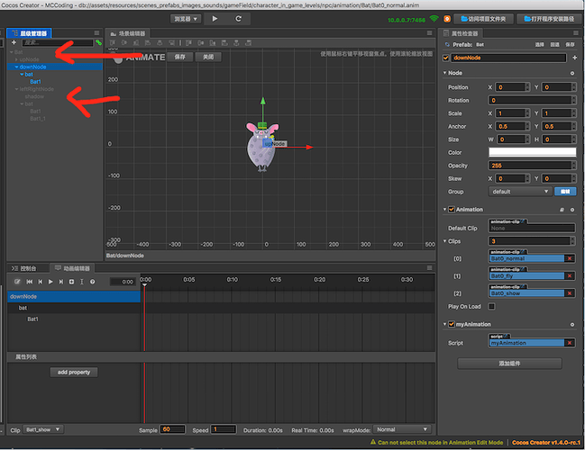 6.再次重启打开,点击的第一个node有时间轴,后面的就没有了,需要把animation中的clip删掉重新拉取才会出现。但是保存重启情况依旧