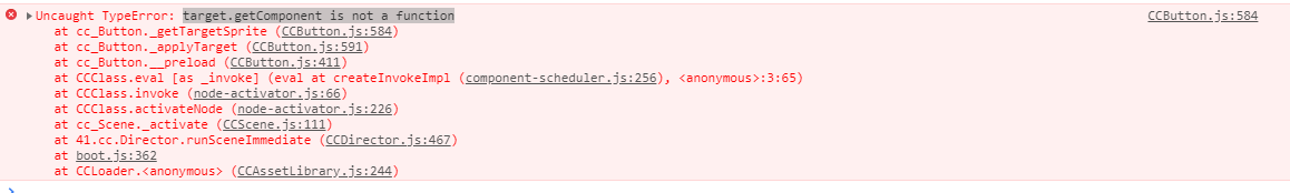错误是说target节点上没有getComponent这个方法最后我是把target节点所在的组都删了重新创建就正常了应该是编辑器的事吧不确定