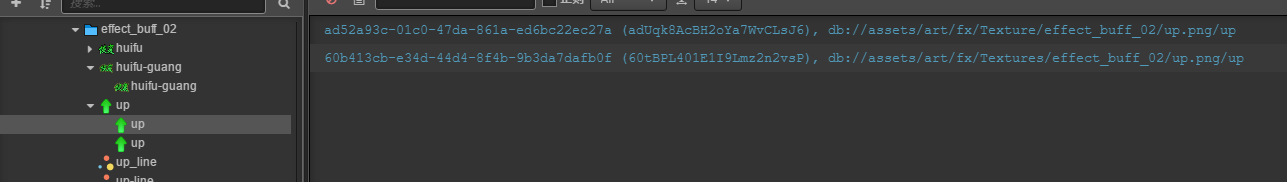 特效使用的图片存在2个SpriteFrame,并且各自uuid不同