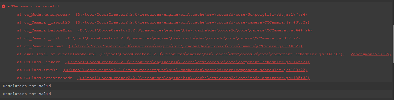 Resolution not valid这个好像是我把构建发布拖到面板上就一直有 The new z is invalid这个是跟上面的朋友一样的情况