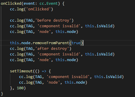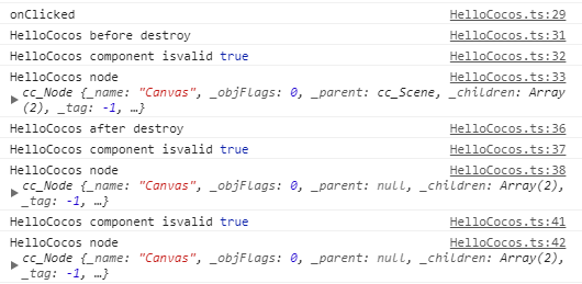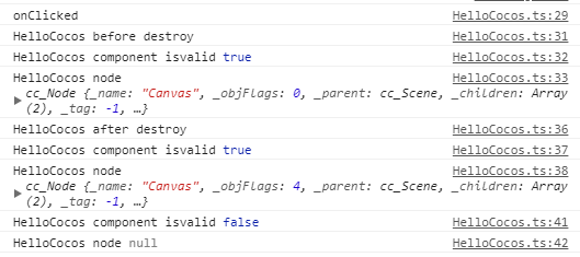 可以看到节点只是从节点树移除了, 节点和脚本组件的关系依然存在, isValid依然为true, 这里只是一个赋值 parent=null, 可以把节点添加到其它节点树的其它位置, 节点就"活了"