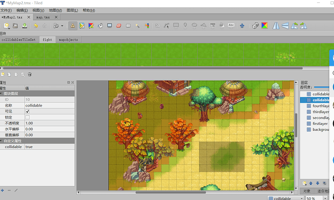 看着教程在tiled地图上加了一层collide层,然后通过查找字符串来实现障碍物无法移动。。