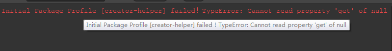 Initial Package Profile [creator-helper] failed!TypeError: Cannot read property ‘get’ of null