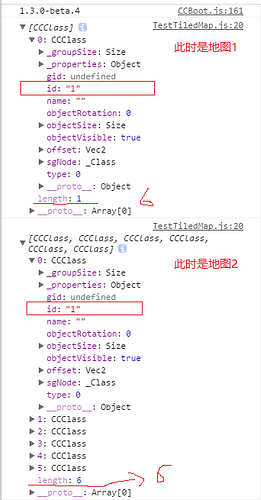 以下是切换地图前后,对象层Objects1的所有对象,发现id=1的对象在切换地图后,仍然存在。