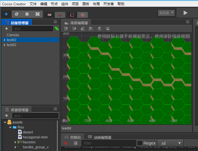 其中,Stagger Axis原本期望的的是Y(也就是让六边形有一组对边平行于Y轴),Stagger Index原本期望是Even(也就是左起第一列上方起点较低),后来载入到Creator里面之后发现Creator默认按照Stagger Axis为X且Stagger Index为Odd来加载,也就是说tmx里面配置的Stagger Axis和Stagger Index属性并没有生效。