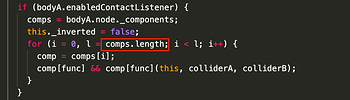 回调时,物理系统会在刚体组件所在节点上迭代寻找同名回调方法,而迭代次数是会包含了待删除cc.TiledUserNodeData组件的,当删除了该组件之后,判断该组件是否有同名方法就会出现这个bug了: