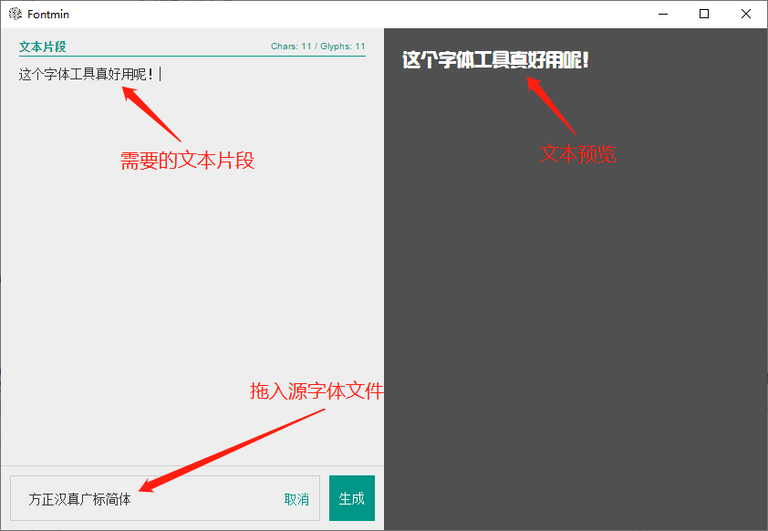 分享一个字体瘦身工具,只需要将需要的文本和源字体文件放入即可
