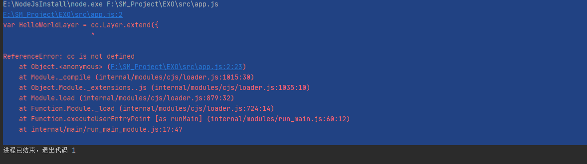 之前用Cocos2d-x开发包的app.js运行没有问题,后来也没有修改过,但是突然就bug了,新手入门,求各位大神帮忙解答,谢谢
