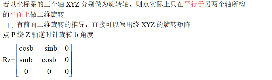 在上一个帖子讲解了简单的二维旋转矩阵推导,也是为了引入三维的旋转矩阵