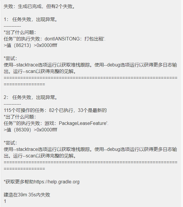 Execution failed for task ‘:game:packageReleaseFeature’.