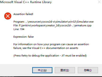 浏览器没有任何错误,模拟器和真机打开就报错,怀疑是龙骨动画的原因,在一个创建切换到第二个场景时报错,两个场景都加载了很多不同的龙骨动画