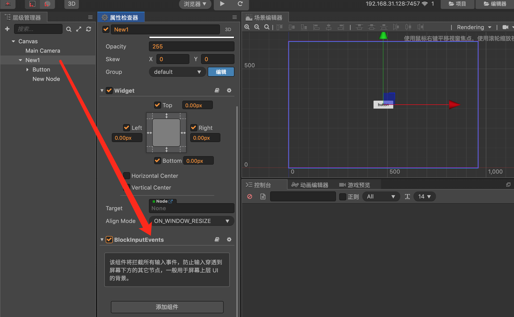 类似这种结构 New1添加屏蔽,New Node在代码设置setSwallowTouches(false) 这个时候 中间的Button按钮事件无法响应 我也是今天才发现这个问题,具体原因还没时间研究