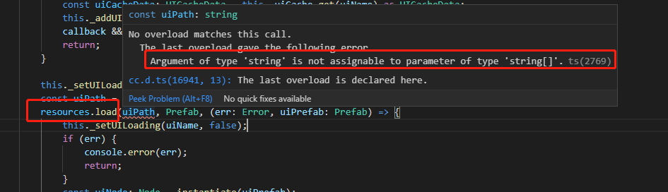 暂时用这种方式吧,api 提示有点问题,resources.load(‘aaaa’,Prefab, (err:Error | null, prefab?: Prefab | null)
