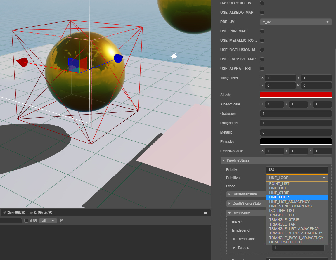 b.找到PipelineStates(渲染管线状态)的Primitive(预设),选择如下图的选项:LINE_LOOP
