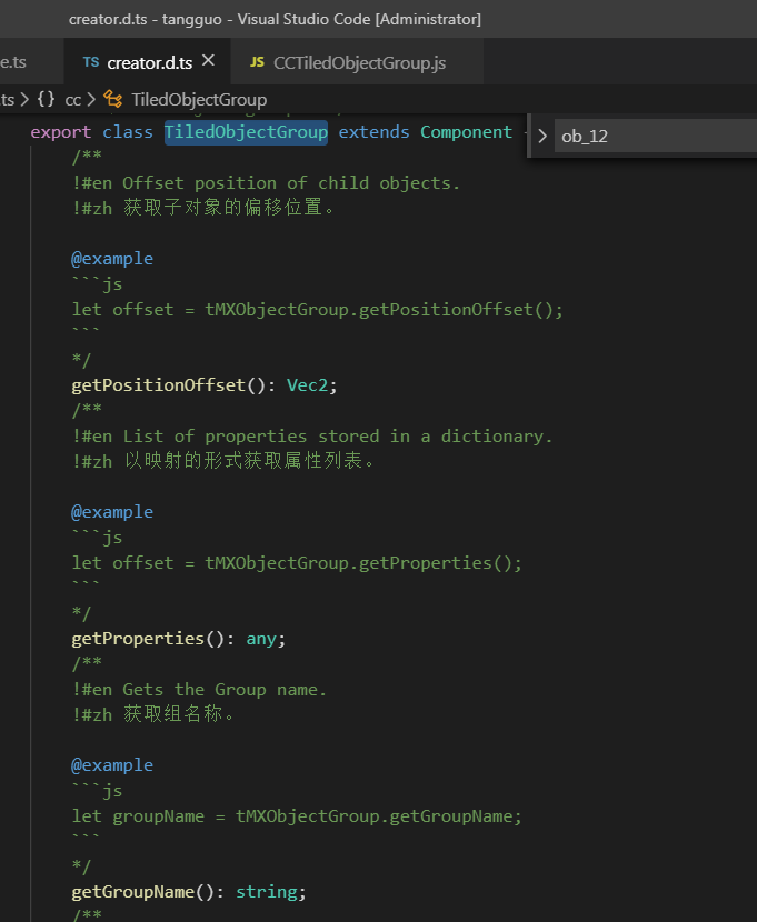 ,目前情况就是用2.4.2加载tiledMap地图,获取属性的时候获取失败。但是用getProperty(‘属性名’)去获取是可以获取到的,然而creator.d.ts里的getProperty()方法没有,导致在vscode里爆红,虽然运行的时候不影响。