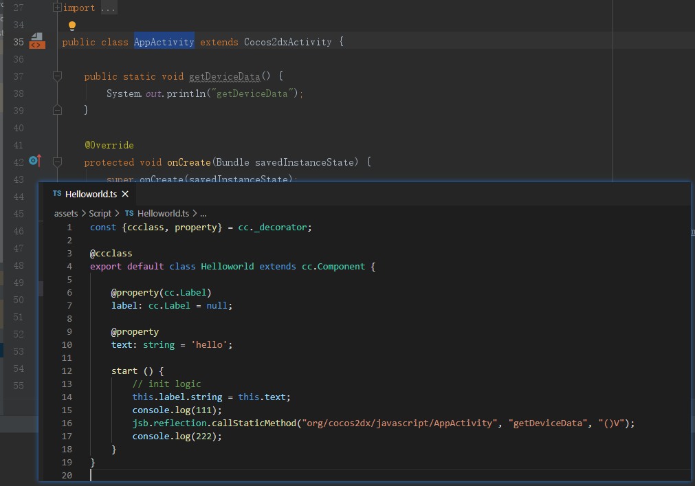 我用 Helloworld 项目直接测试也是存在这个问题的, 不过发现2.4.3里面存在AppActivity和InstantAppActivity, AppActivity类js层调用不到,InstantAppActivity这个可以 , 而在2.3.3是只有AppActivity,不太清楚为什么版本升级后会有两个Activity,却只实例化了其中一个