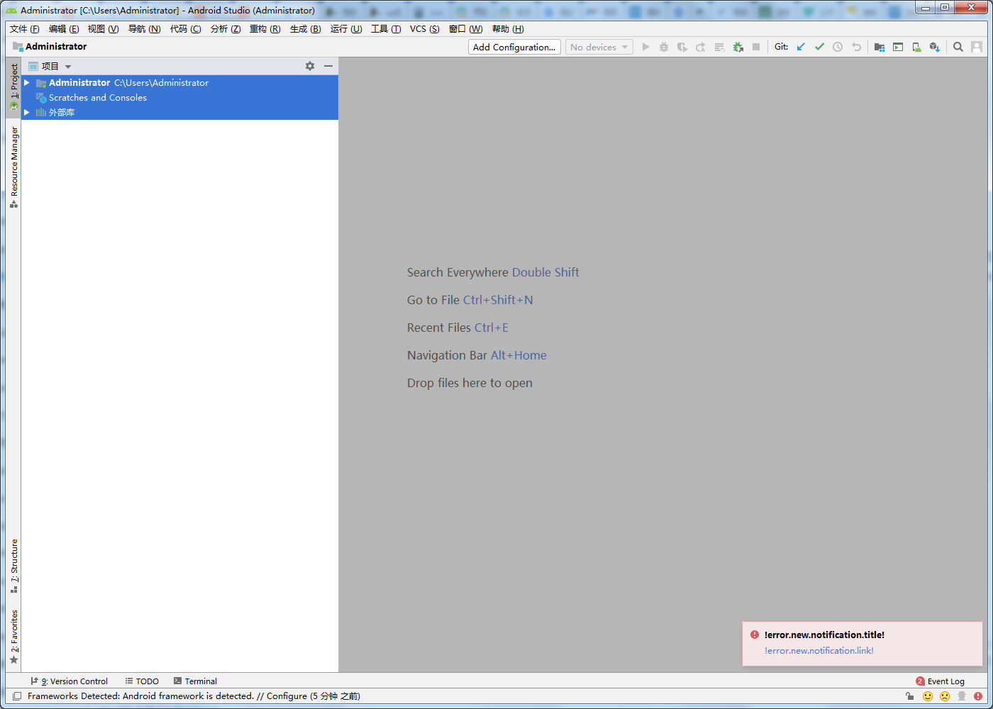 使用 Android Studio 工程:C:\Users\Administrator\Desktop\NewProject\build\jsb-link\frameworks\runtime-src\proj.android-studio