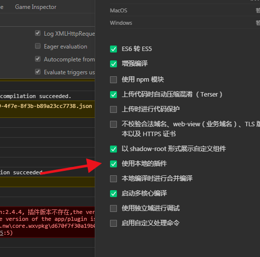 然后我在设置中开启使用本地插件后,虽然能让游戏跑起来